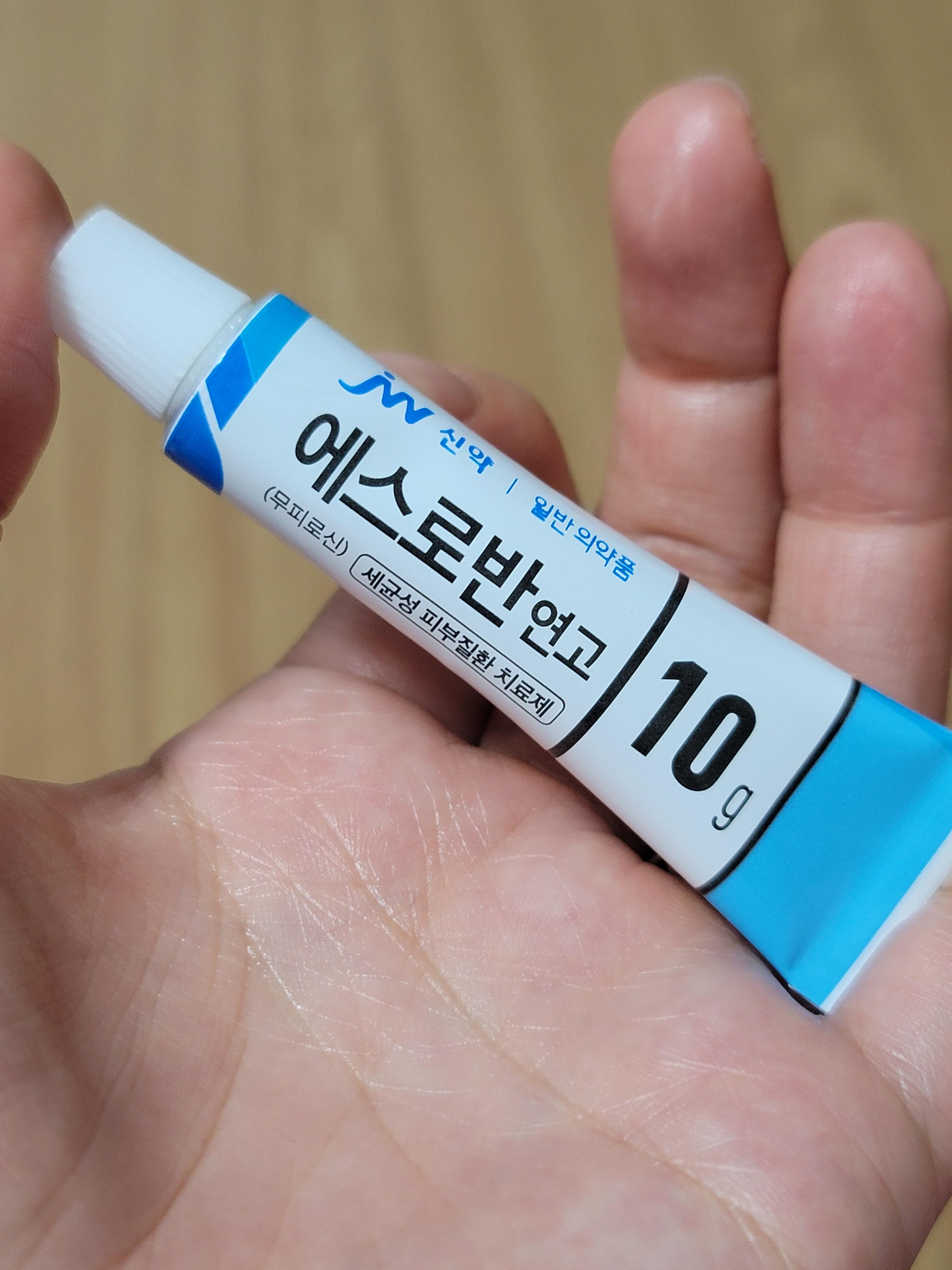 아이의 농가진을 치료하며 여러 병원을 거쳤는데요. 꼭 빠지지 않은 연고가 바로 에스로반 연고였습니다.